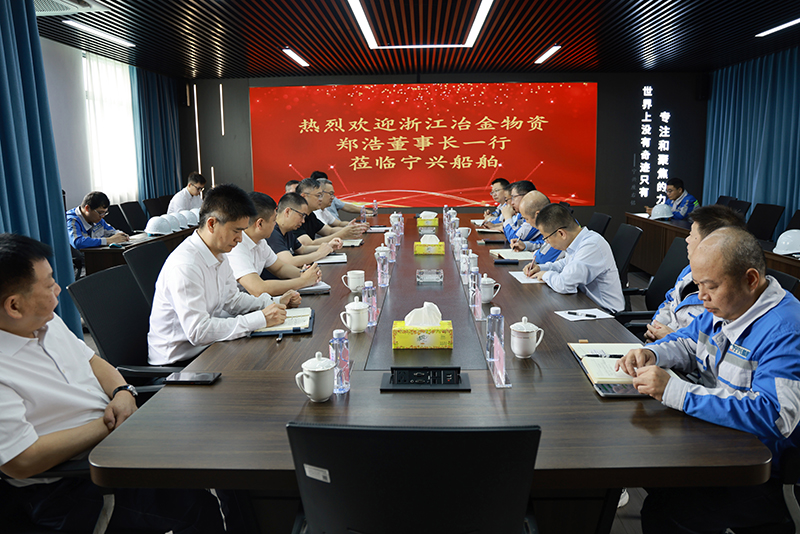 6月12日,冶金物資黨委書記、董事長鄭浩帶隊前往舟山寧興船舶修造有限公司進行實地調研。寧興船舶董事長王文彤、總經理江創宏等熱情接待,并陪同參觀交流。